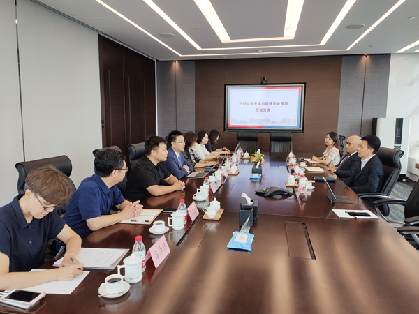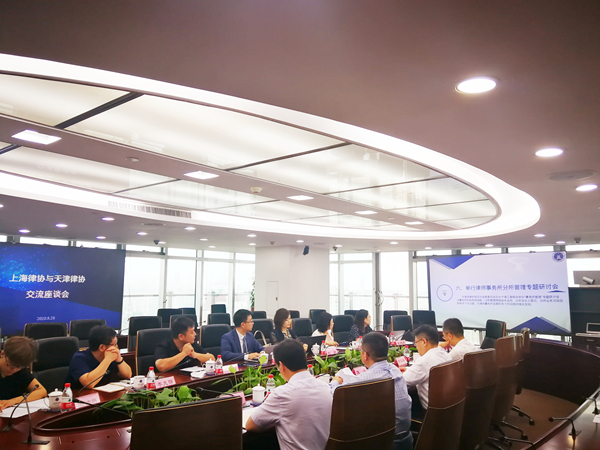 2020年8月26日上午,天津市律師協會副會長牛同栩、律所建設指導委員會副主任劉朔、懲戒委員會副主任王軼、行業規則委員會副主任姚丹、行業發展委員會委員王麗婷、監事李克強、秘書處會員部竇沛然一行7人來訪上海律協。上海律協副會長陳峰、理事、律所規范與發展委員會主任吳堅、規劃與規則委員會主任黃榮楠、紀律(懲戒)委員會副主任杭煒、公共關系部主任金鷹等接待了天津律協考察團一行并交流座談。