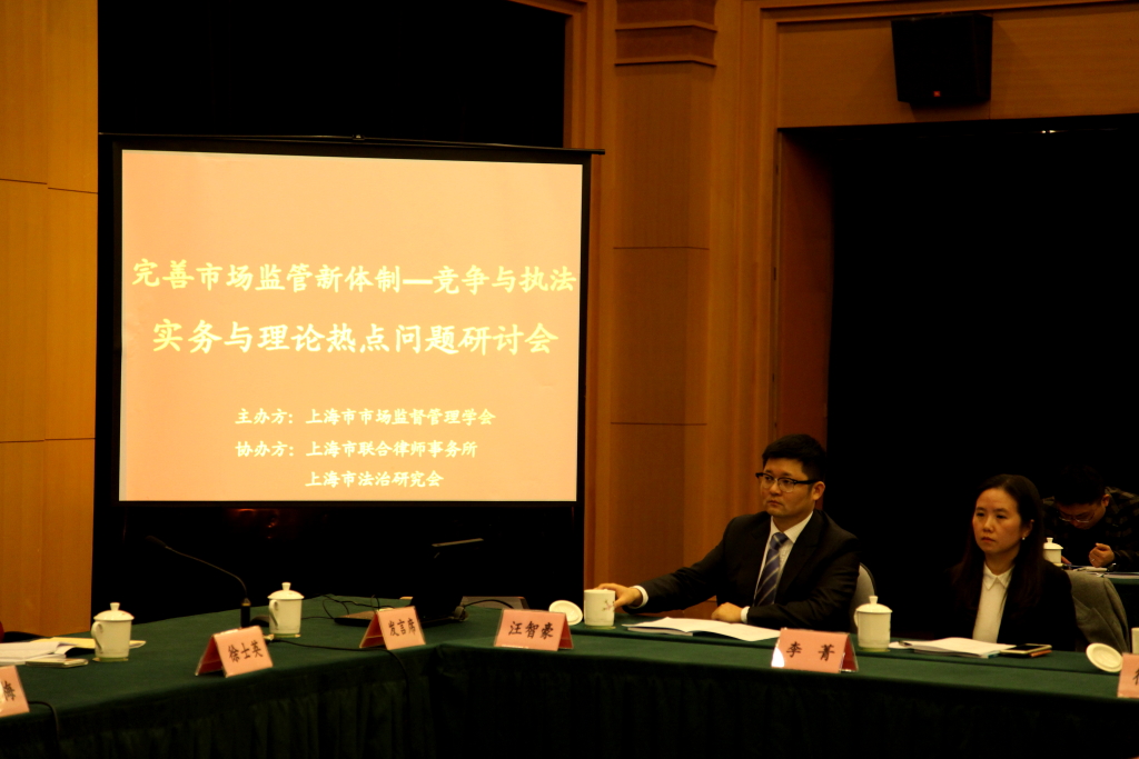 會議由上海市市場監督學會理事、上海市律師協會國際投資與反壟斷業務研究委員會委員、聯合律師事務所合伙人汪智豪律師主持。各位領導和專家學者以及相關企業、商會代表等就反商業賄賂執法、反不正當競爭法修訂、不正當競爭與價格壟斷認定標準、實務困境、完善之策等相關議題進行了熱烈的討論。與會的企業、商會代表紛紛發言,從企業運營的角度談了各自對完善市場監管體制中出現的一些狀況的看法,就當下企業涉及較多的關于商業賄賂、不正當競爭等現狀提出了相關問題。上海市工商局公平交易處處長李孝猛、上海市律師協會國際投資與反壟斷業務研究委員會委員、聯合律師事務所合伙人李菁律師、華東政法大學教授徐士英、上海交