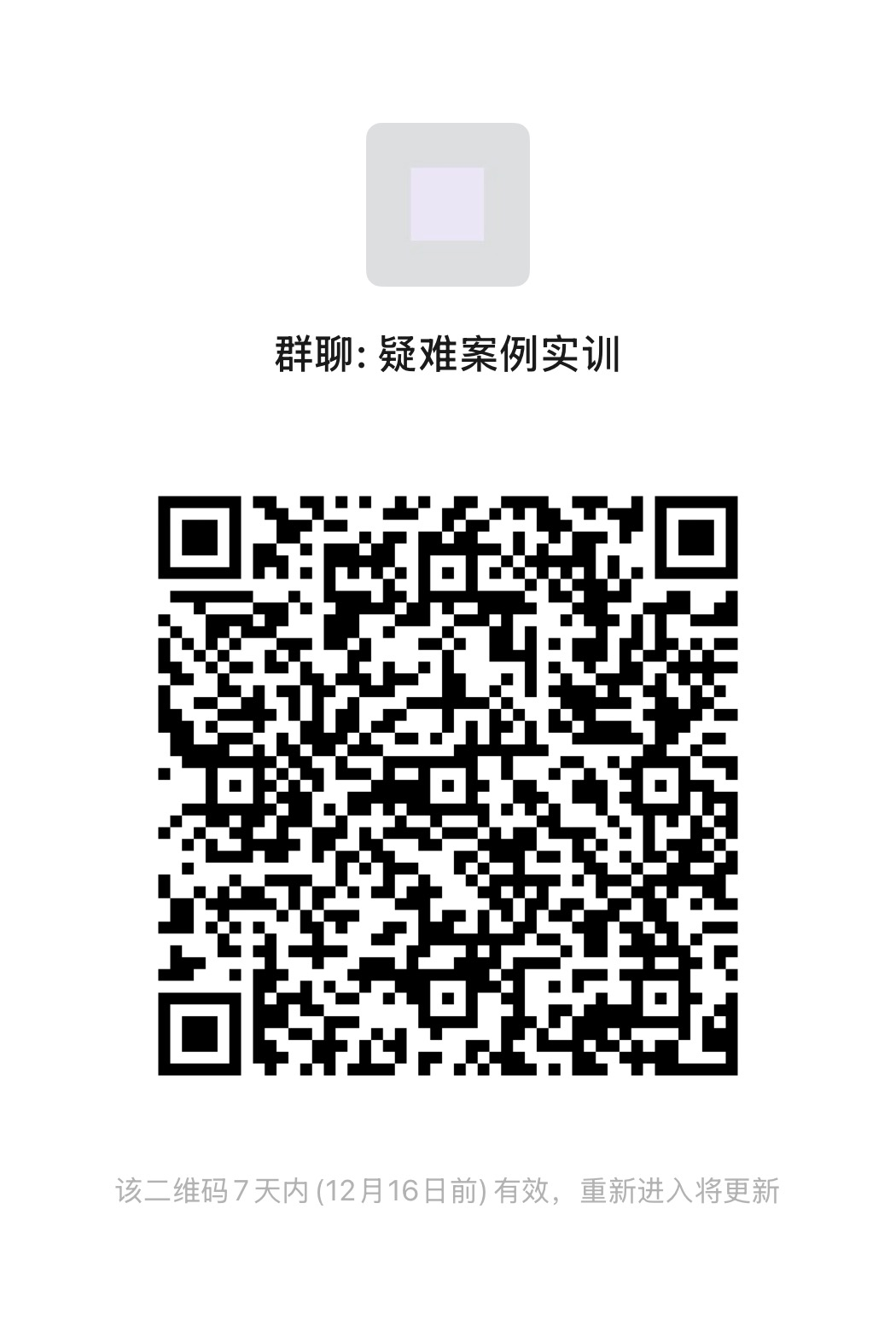 2.參加分組疑難案例討論:限32人(需同時報名青年律師專業素質拓展班),掃描下方二維碼成功入群,以入群先后為準。