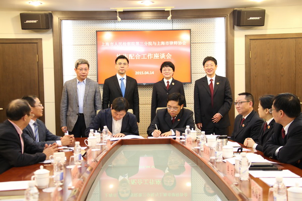 2015年4月14日,上海市人民檢察院第三分院與上海市律師協(xié)會協(xié)作配合工作備忘錄簽字儀式在上海市人民檢察院第三分院會議室舉行。上海市人民檢察院第三分院副檢察長李文主持簽字儀式。