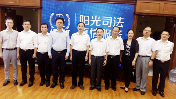 2017年8月29日上午,深圳市律協會長林昌熾、副會長章成、理事李軍強、羅振輝、潘翔、秘書長王紅、副秘書長劉峰一行七人來訪市律協。