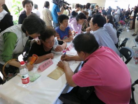 活動(dòng)現(xiàn)場(chǎng),律師、法律援助中心工作人員和區(qū)法院、區(qū)公安分局、區(qū)婦聯(lián)等老年維權(quán)成員單位的有關(guān)人員還共同為廣大老年人提供了法律咨詢(xún)服務(wù)。咨詢(xún)事項(xiàng)多為與老年人切身利益最密切、最關(guān)心的事情,主要涉及財(cái)產(chǎn)、社會(huì)保障以及贍養(yǎng)等方面的問(wèn)題,法律咨詢(xún)?nèi)藛T熱情接待,耐心傾聽(tīng),認(rèn)真記錄,細(xì)致回答,直到老年人滿(mǎn)意為止。區(qū)法律援助中心的工作人員還向老年人發(fā)放了《法律援助便民卡》、《法律援助條例》、《法律援助宣傳單》等各種宣傳資料100余份,并在一樓大廳展示法律援助條例宣傳版面,向廣大老年人介紹了各種法律知識(shí)和法律信息。