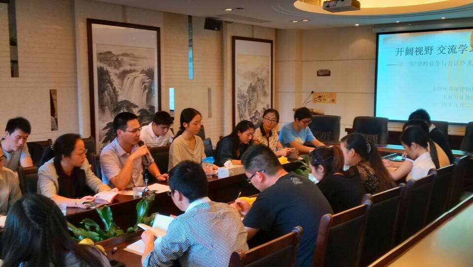 為了進一步增強律師和公證員之間的交流和溝通,2014年9月21日下午,在奉賢區公證處二樓會議室,奉賢區青年律師聯誼會和奉賢區公證處團支部聯合舉辦“律師業務與公證”的沙龍活動,旨在開闊青年律師的視野,加強與公證員的交流、學習,沙龍活動由奉賢區青年律師聯誼會會長顧帥律師主持。