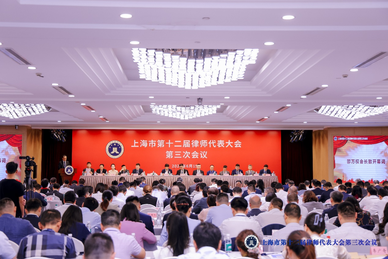 2025年6月15日,上海市第十二屆律師代表大會第三次會議召開。上海市司法局黨委書記、局長吳堅勇,上海市司法局黨委副書記、市律師行業黨委書記周文杰出席會議并講話。上海律協會長邵萬權作第十二屆理事會2024年度工作報告。上海律協監事長朱林海作第十二屆監事會2024年度工作報告。廖明濤副會長作財務報告和預決算說明。本市律師代表、嘉賓及媒體記者300余人參加。徐匯區司法局黨委書記、局長左靜鳴,黨委委員、副局長楊佳琛作為特邀代表應邀出席。