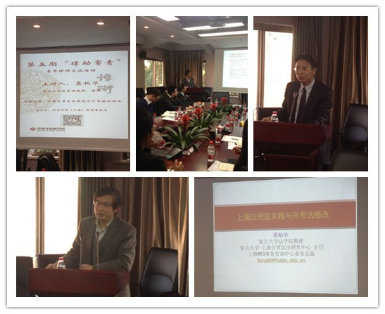 活動邀請了復(fù)旦大學(xué)法學(xué)院教授、博導(dǎo)、復(fù)旦大學(xué)上海自貿(mào)區(qū)法研究中心主任、上海WTO事務(wù)咨詢中心業(yè)務(wù)總監(jiān)龔柏華作了題為“上海自貿(mào)區(qū)的實踐與外資法的修改”主題報告。