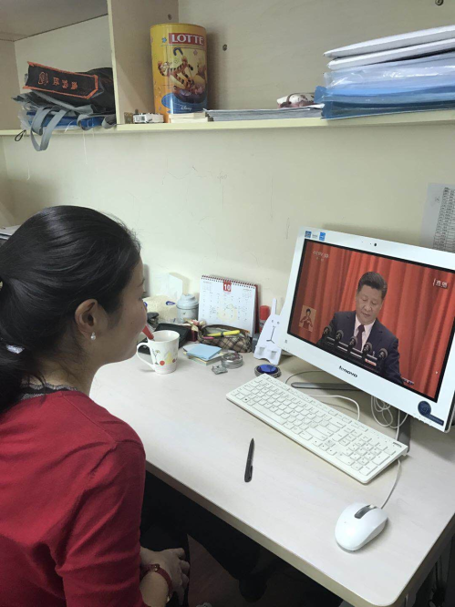 除了通過集中收看以外,廣大律師還自發積極聚在一起,利用互聯網收看開幕式直播。由于工作原因而未能參加集中收聽收看的黨員律師,也通過各種新媒體渠道,收看收聽,學習會議精神。