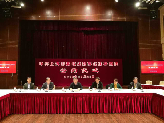 11月24日上午,中共上海市委統(tǒng)戰(zhàn)部舉行聘任法律顧問簽約儀式,上海市通力律師事務(wù)所創(chuàng)始合伙人俞衛(wèi)鋒等9人成為統(tǒng)戰(zhàn)部首批法律顧問,其中7名是在上海執(zhí)業(yè)的律師,這是全市黨委系統(tǒng)中首家聘請法律顧問的部門。