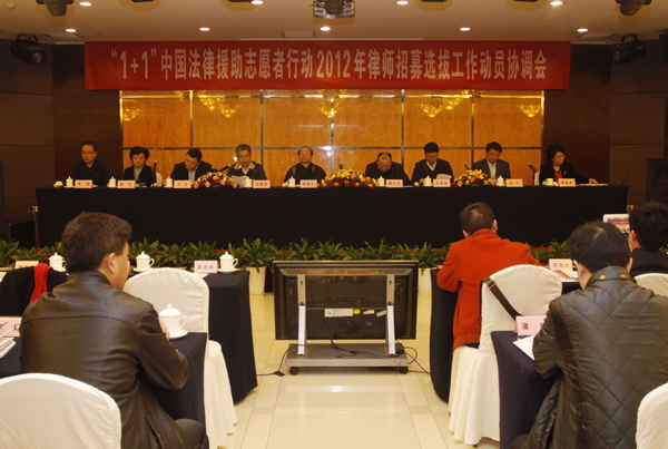 2012年3月14日下午,司法部律師公證工作指導司、中華全國律師協會、中國法律援助基金會在北京市培新賓館聯合舉行“1+1”中國法律援助志愿者行動2012年律師招募選拔工作動員協調會。上海律協業務部主任潘瑜參加了本次會議。