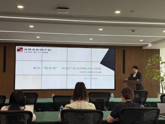 李夢園律師以“破局‘賠償難’”:知識產權高判賠訴訟攻略——五維實戰體系拆解”為題展開分享。講座中,李夢園律師直擊知產維權“靈魂三拷問”——勝訴率、判賠額與成本。講座系統拆解了“五維實戰體系”,從核心概念精解、行業大數據透視,到賠償條款深度剖析、全流程訴訟設計及落地操作技巧,層層遞進。參與培訓的律師紛紛表示,講座內容“干貨滿滿、實操性強”,對提升知產維權效能極具啟發!