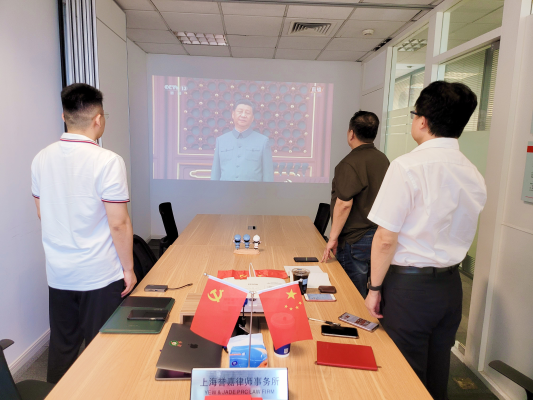2021年7月1日上午8時,上海譽嘉律師事務所組織收看慶祝中國共產黨成立100周年大會直播,在支部書記賈成英同志、事務所主任田原的帶領下,大家或在事務所會議室,或在家中、路途上,通過“學習強國”共同仔細聆聽了習近平總書記在大會上的重要講話。