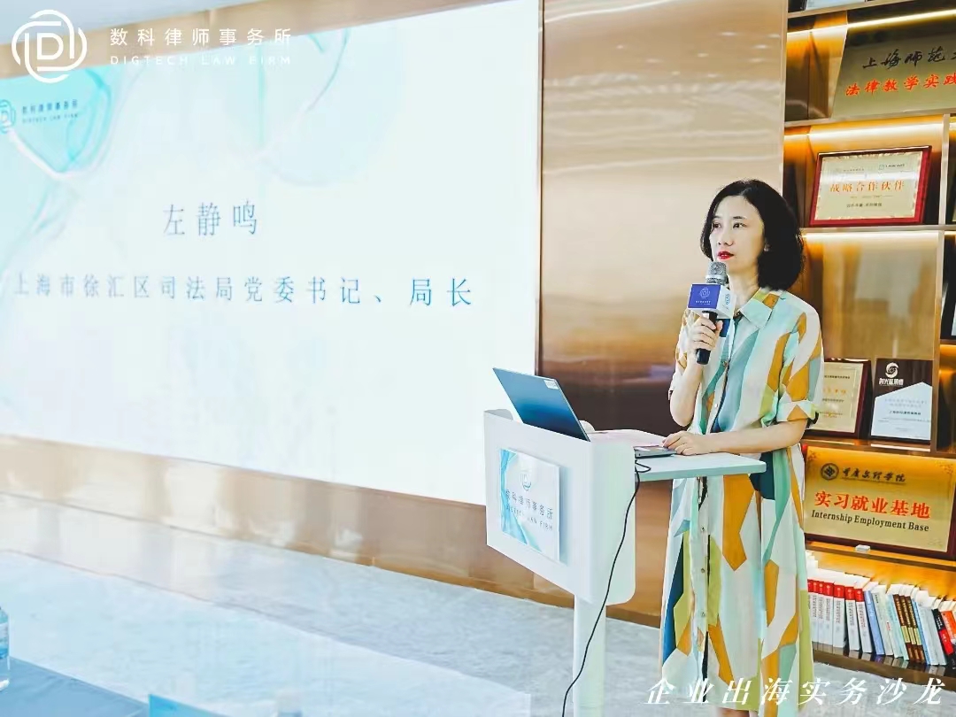 活動伊始,上海市徐匯區司法局黨委書記、局長左靜鳴發表開場致辭,對數科律所在西岸數字谷國際法律服務集聚區建設以及涉外法律服務領域的積極貢獻給予高度肯定。左靜鳴局長通過“三個一”表達了深化徐匯法律服務領域國際協作的堅定決心。第一個“一”:答好一道題,即企業發展的必答題。建設“五個中心”、強化“四大功能”的規劃離不開對外開放的基本國策。而企業出海則業已成為中國企業的必修課、必答題。這意味著要勇于突破地域限制,積極參與全球市場競爭,通過技術創新、品牌建設和國際化經營,在不斷提升自身競爭力的同時,通過專業領域體系的完善,深化與東道國政府和企業的溝通合作,實現互利共贏、共同發展。第二個“一”:建好一個版塊。“西岸數字谷”版塊是徐匯區結合地方經濟和產業特色,圍繞“專業+行業”搭建的法律服務集聚區,旨在打造法律服務業的新高地。在此基礎上,徐匯區推出了一系列創新舉措,其中包括全市首個法律服務機構國際互認“徐匯協議”。第三個“一” :強化一個思維,那就是法治思維。希望律師能夠在國際貿易規則、國際投資協議、反壟斷、反不當競爭法等領域發揮專業的優勢,助力企業在出海的過程中規避風險,應對挑戰。期待徐匯西岸未來能建成充滿活力,體系完備,人才濟濟的國際法律服務集聚區。