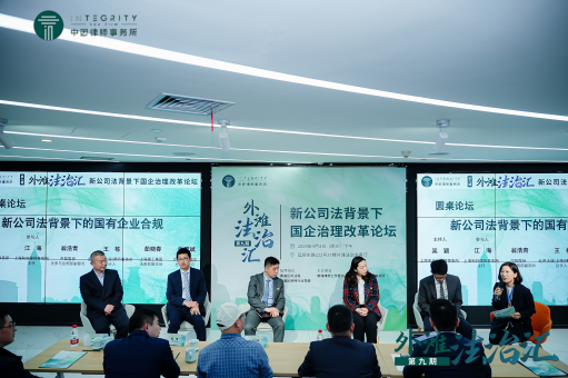 第一場圓桌論壇由上海市金茂律師事務(wù)所合伙人吳穎主持,上海和歸律師事務(wù)所主任江海、中智股份法務(wù)與合規(guī)部副部長翁浩青、北京大成(上海)律師事務(wù)所合伙人王棟、上海建工集團(tuán)法務(wù)部副主任茹曉春、外灘投資集團(tuán)總法律顧問張雅斌作為嘉賓參與圓桌分享,與會(huì)嘉賓從國有企業(yè)法務(wù)和律師的不同視角,探討了國有企業(yè)合規(guī)問題。