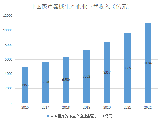 2016-2022年中國醫療器械生產企業主營收入統計情況及預測