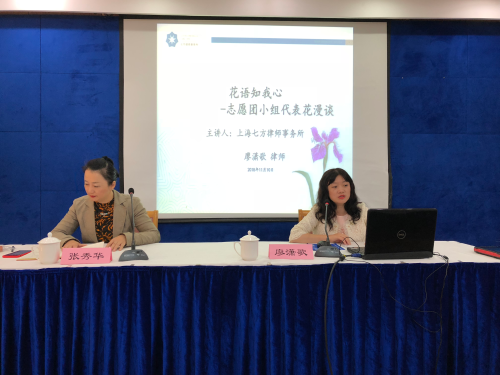 上海七方律師事務所合伙人廖瀟歌律師就此帶來“花語知我心——志愿團小組代表花漫談”的講座。本次講座源起于巾幗律師志愿團有9個小組組成,每一個小組選擇了一種花作為自己小組的標志花這樣一個溫馨的故事背景。志愿團的女律師們正如繽紛燦爛的花,不同的花又有不同的花語,堅強忠貞、嬌羞自由、圓滿幸福、成熟興盛、清白脫俗。將志愿團各小組以不同花來代表,美好寓意的背后,更有一種莊嚴的使命。