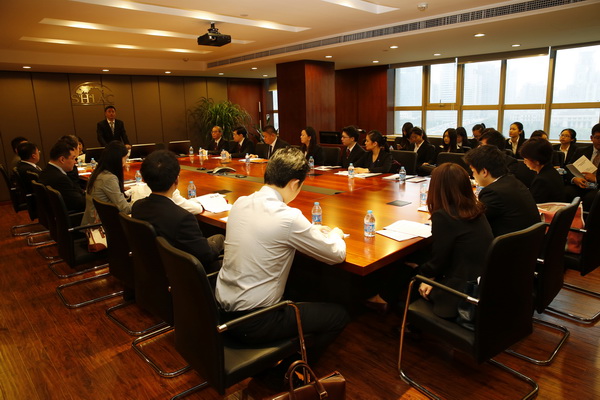 模擬仲裁庭后,香港大律師公會代表團還分別參觀了北京金杜律師事務所上海分所及上海市錦天城律師事務所。金杜所上海分所合伙人江寄鷗、陳青東、胡梅、傅軼接待了代表團。他們介紹了金杜所從1993年成立至今的發展歷程,并與代表團就滬港兩地公司并購,資本市場等具體問題進行了深入的交流。錦天城所主任吳明德,合伙人陳乃蔚、沈國權、裘索、郭重清接待了代表團。他們首先介紹了錦天城的基本情況,然后雙方就兩地知識產權法律服務的發展情況,兩地律師與法官的執業轉換,兩地律師人才的合作培養及香港資深大律師資格的取得進行了深入的交流。