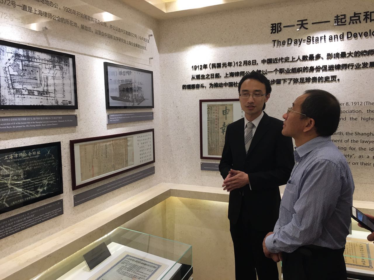 5月25日下午,山東省律協(xié)黨委專職副書記張良慶、副秘書長李鵬以及部分山東省律協(xié)律師代表參觀了上海律師公會舊址陳列館。上海律師公會舊址陳列館新聘任的青年律師講解員候浩彥律師為到訪來賓做了深入細致的講解。大家了解上海律師公會的起源與發(fā)展,以及上海律師為維護社會公平正義、司法主權(quán)獨立在中國近現(xiàn)代史、法治史上留下的濃墨重彩的事跡。張書記表示,陳列館雖然建立在上海,但對全國律師都具有深遠的意義,這里能夠全面的了解律師的發(fā)展史,可以說是律師的精神家園。這些文物與史料都是律師行業(yè)珍貴的歷史文化遺產(chǎn),值得所有的律師、法律從業(yè)者共同瞻仰和學(xué)習(xí)。