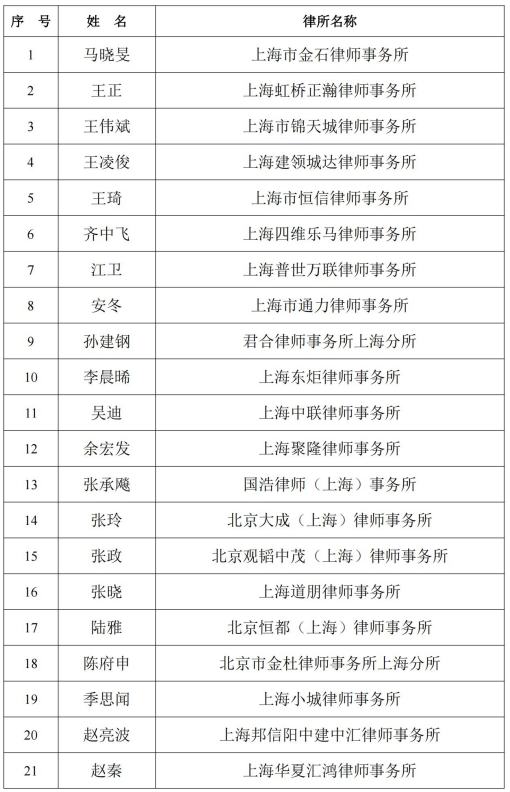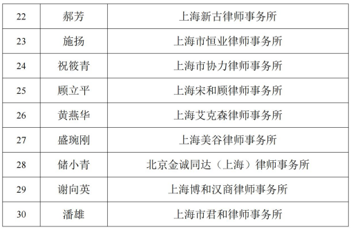 附件:第七屆上海市優(yōu)秀青年律師評選活動入圍終評階段30位候選律師名單