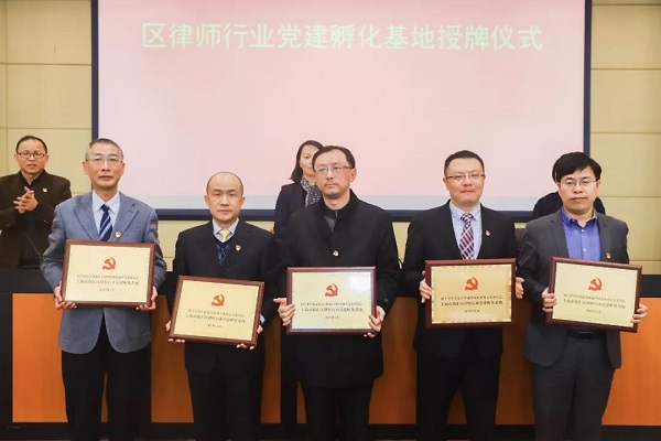 為五家律師事務所黨支部頒發“區律師行業黨建孵化基地”銅牌 |
