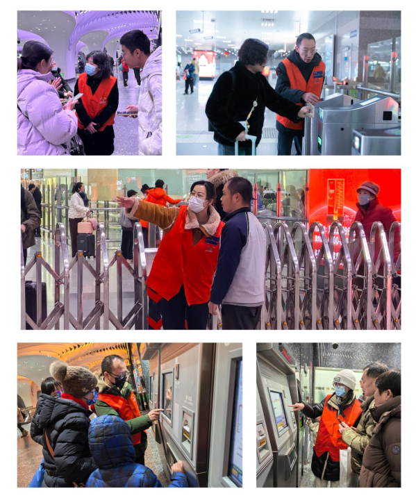志愿服務當日,青年律師們在地鐵工作人員的專業指導和培訓下,兵分多路迅速投入服務中。分別在TVM售票區域引導乘客正確、快速購票,做好乘客詢問和指引服務;在站廳進出站閘機口、扶梯口等引導乘客有序進出,合理分流,避免人群擁擠,為返程和出游的市民朋友們排憂解難。