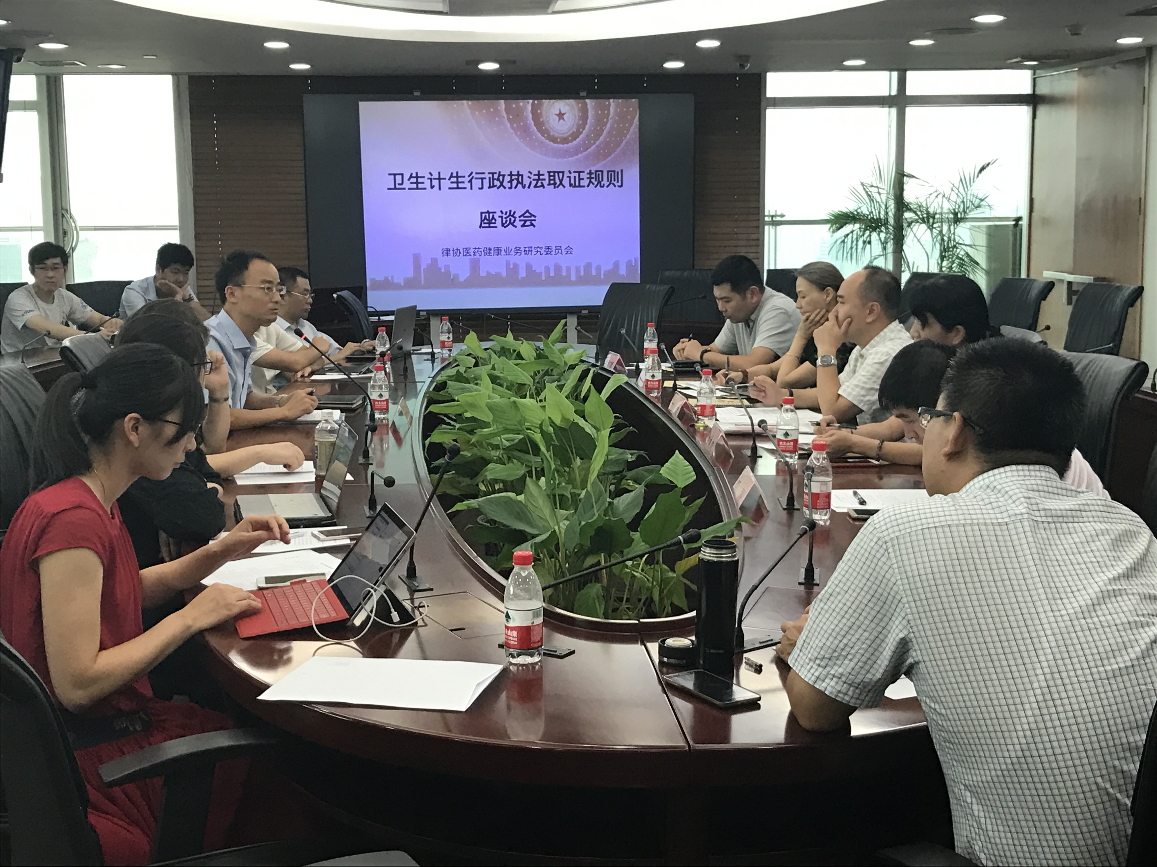 盧意光律師首先介紹本次會議的背景情況。之后,與會嘉賓圍繞衛生計生領域執法與一般行政執法的主要區別、衛生計生執法取證中調查取證的方法和程序問題、衛生計生行政執法中證據的轉化問題、衛生計生行政執法中證據的審查和運用問題、目前衛生計生行政執法取證過程中存在的主要困難和對于衛生計生行政執法取證的意見和建議等問題發表了各自的意見和看法。同時根據當前衛生執法情況提出衛生計生領域專業性較強、合法電子數據的認定困難以及執法手段缺乏等困惑。在自由討論階段,與會人員針對嘉賓們提出的問題進行了深入交流。