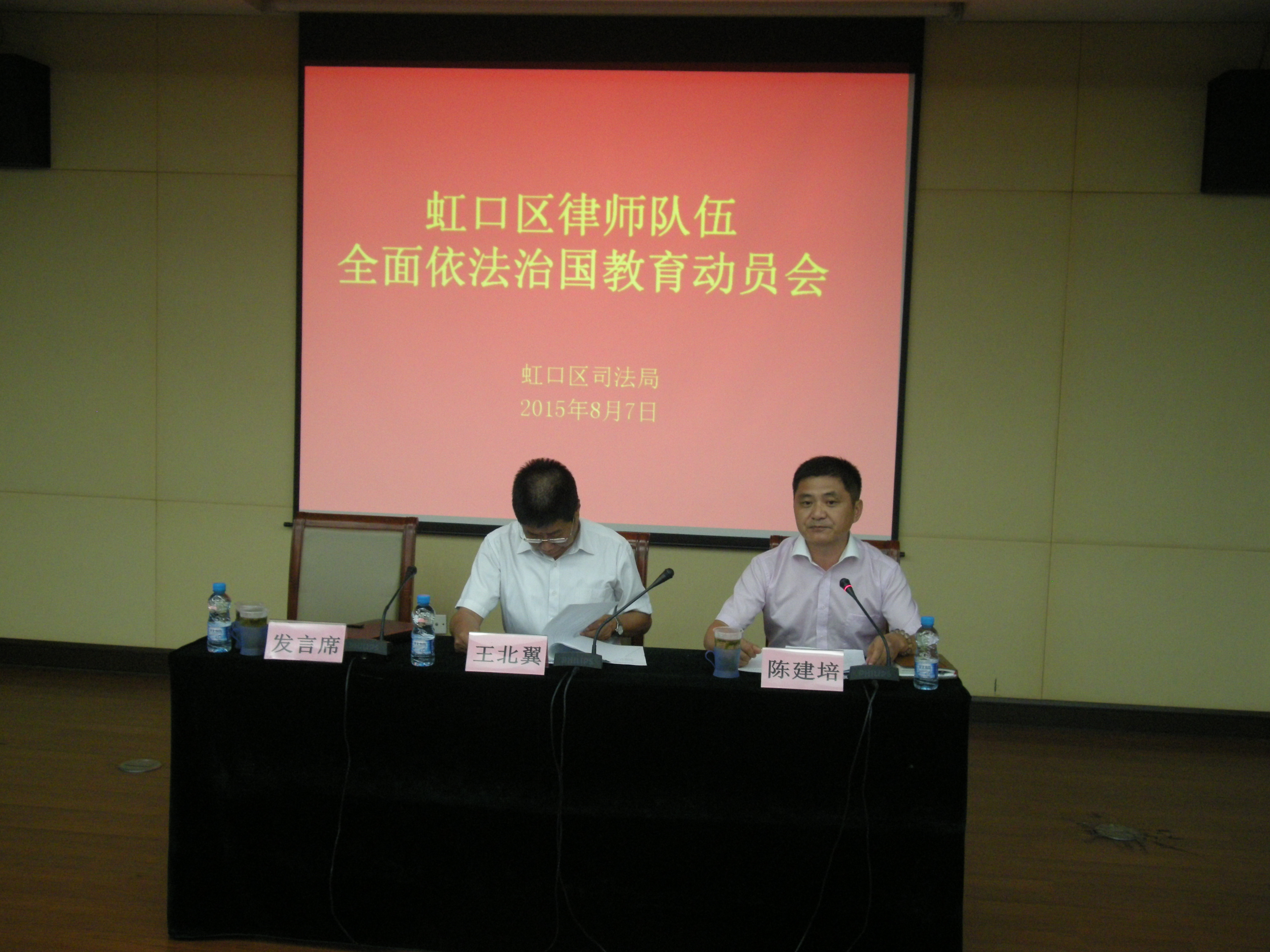 陳建培副調研員結合區司法局制定的《關于在全區律師隊伍中開展全面依法治國教育的實施方案》的文件精神,圍繞總體目標、主要內容、實施步驟等方面做了動員部署,教育引導廣大律師要牢記“2個堅決”、“3個始終”的法律服務理念,將我區律師建設成為一支政治素質好、品德高尚、業務精良、維護人民群眾合法權益、促進司法公正的高素質隊伍而努力。隨后,陳建培同志宣讀了“市律協關于任命區(縣)律師工作委員會組成人員”名單。區律師工作委員會主任洪亮代表區律師工作委員會表態,積極擁護和踐行在全區律師隊伍中開展全面依法治國教育活動。