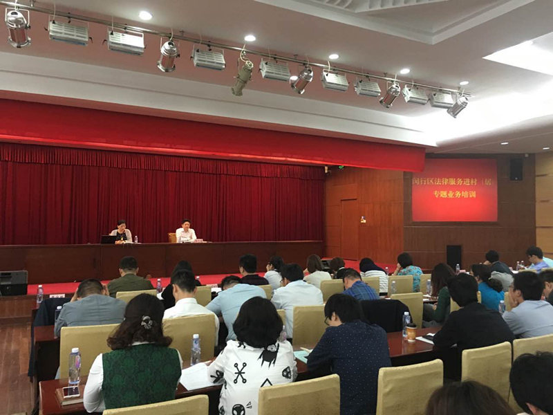 為深入推進市委一號課題,加強基層建設,促進村(居)依法自治,根據《關于進一步推進閔行區法律服務進村(居)工作的意見》的要求、以及《關于在全區推進法律服務進村(居)工作的實施方案》具體工作部署,5月27日下午,區司法局舉辦法律服務進村(居)專題業務培訓。會議由區司法局黨委副書記周信根主持。區司法局黨委副書記、局長金海民應邀參加。