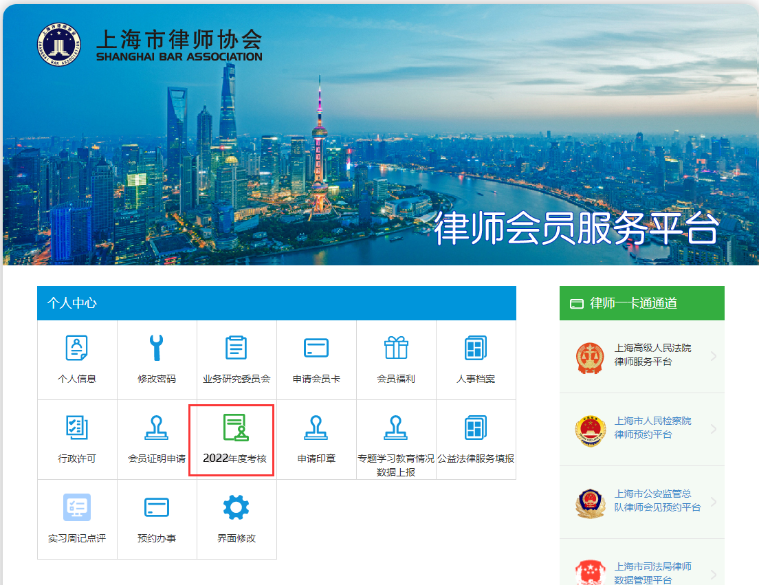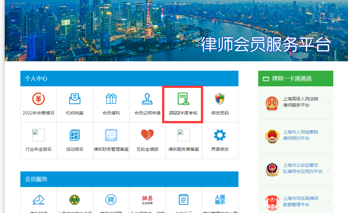 律師通過個人會員賬號登錄東方律師網“會員中心”( http://www.aineast.com),進入“2022年度考核”欄目,填寫《律師執業年度考核登記表》并提交所在律師事務所。欄目將于4月1日正式上線。