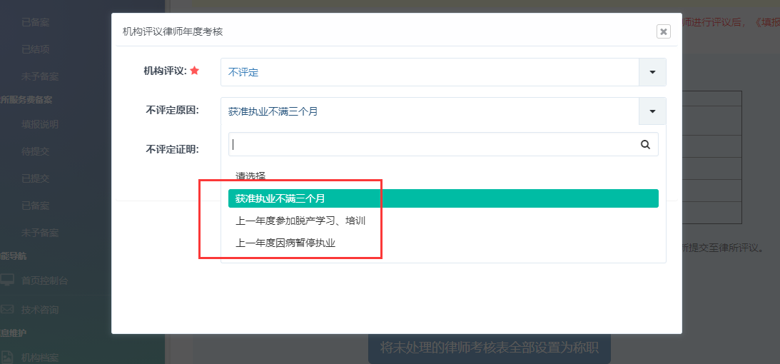 市律協對下列情形暫緩確定年度考核情況: