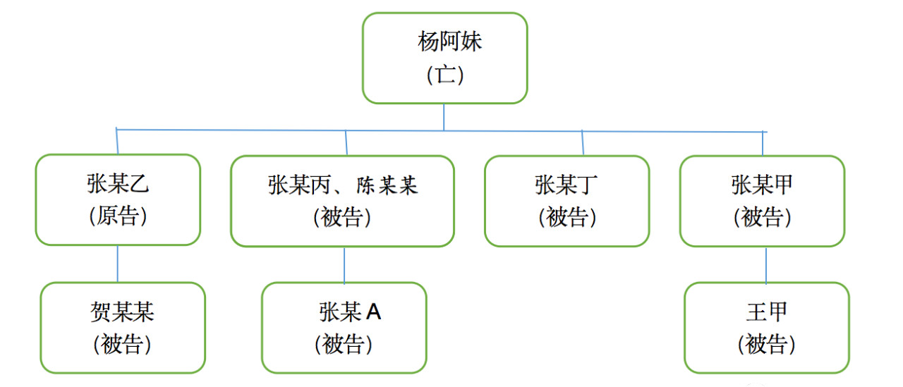 張某乙、張某丙、張某丁、張某甲系兄弟姐妹關(guān)系;賀某某是張某乙之女;王甲是張某甲之女;陳某某與張某丙是夫妻關(guān)系,張某A是兩人之女。上海市海倫路XXX號房屋為公房,原承租人是張某乙等人之母楊阿妹,早先租賃面積包括二層統(tǒng)樓21.90平方米、陽臺3平方米、曬臺搭建15.70平方米,由楊阿妹居住于二層統(tǒng)樓,張某乙一 ¥家居住于曬臺搭建。1993年,楊阿妹以母女關(guān)系不睦為由,向上海市虹口區(qū)房屋糾紛仲裁委員會申請分列房屋租賃戶名。經(jīng)該委員會調(diào)解,雙方達(dá)成調(diào)解協(xié)議,二層統(tǒng)樓(陽臺)租賃戶名為楊阿妹,曬臺搭建租賃戶名為張某乙。據(jù)此海倫路XXX號分為兩處公房,租賃部位二層統(tǒng)樓(陽臺)的房屋(以下簡稱“系爭房屋”)承租人為楊阿妹,租賃部位曬臺搭建的房屋承租人為張某乙。張某乙、賀某某的戶籍也遷入新的戶口本。2007年,張某乙將海倫路XXX號曬臺搭建公房出售,與賀某某的戶籍又遷回楊阿妹所在戶口本。張某丁的戶籍原在系爭房屋,后因服刑遷出,刑滿后遷回系爭房屋并實(shí)際居住直至動遷。張某丙一家在1994年受配本市東礁四村公房并居住,后從該處將戶籍遷到系爭房屋。張某甲一家在2000年獲得動遷安置,取得動遷款后購買了本市四川北路房屋居住,隨后將戶籍遷到系爭房屋。動遷之前,系爭房屋內(nèi)有戶籍8人,即本案所有當(dāng)事人。楊阿妹于2010年去世,此后系爭房屋承租人未作變更。