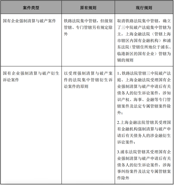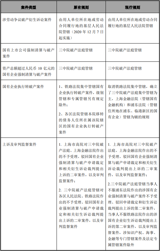 3. 自2022年1月1日起,鐵路法院不再集中管轄國有企業強制清算與破產案件,轉由上海市第三中級人民法院破產法庭(以下簡稱“三中院破產法庭”)進行集中管轄,不再以國有企業的性質作為確定集中管轄的依據。