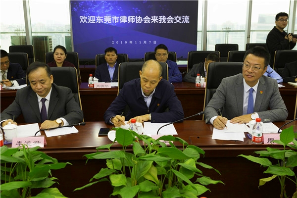 2019年11月7日上午,東莞市律師協會一行由東莞市律師行業黨委專職副書記孫華帶隊,與市司法局政治處副主任、市律師行業黨委副書記龍開族,市司法局律師工作管理科科長、市律師行業黨委委員謝景慧,市律師協會副會長周云等一行三十余人來訪市律協。上海市律協副會長楊波、副秘書長潘瑜接待了考察團一行并交流座談。參加座談的還有上海市律協理事、市律協律所規范發展委主任吳堅、副主任馮加慶,市律協能源資源與環境業務研究委員會主任、上海市金茂律師事務所黨總支副書記吳榮良律師、光大會展中心律師事務所聯合黨支部書記、達隆所主任張洪喜律師等。