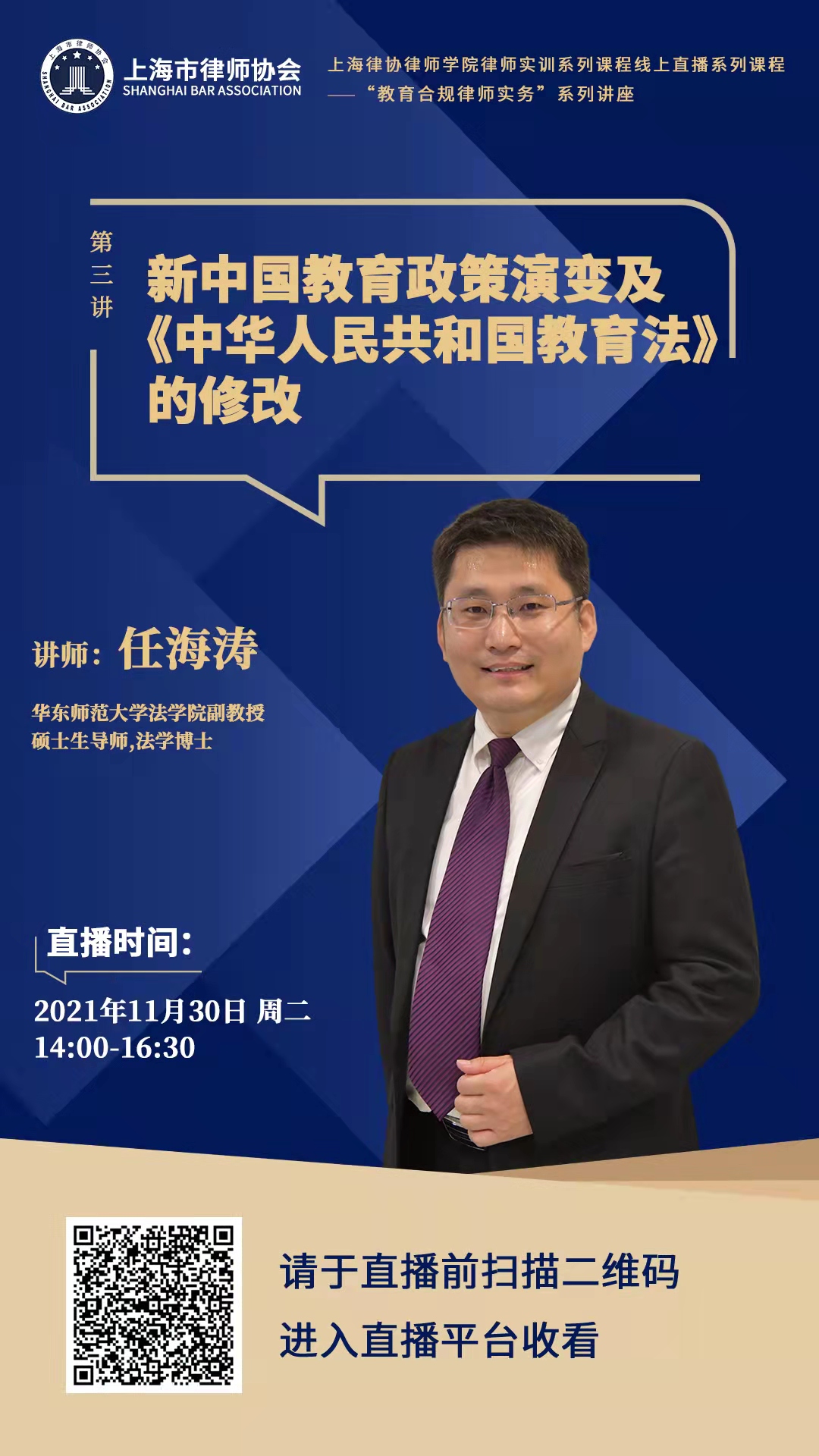 主講人:任海濤,華東師范大學法學院副教授,碩士生導師,法學博士。主要研究方向為教育法學、法治教育;