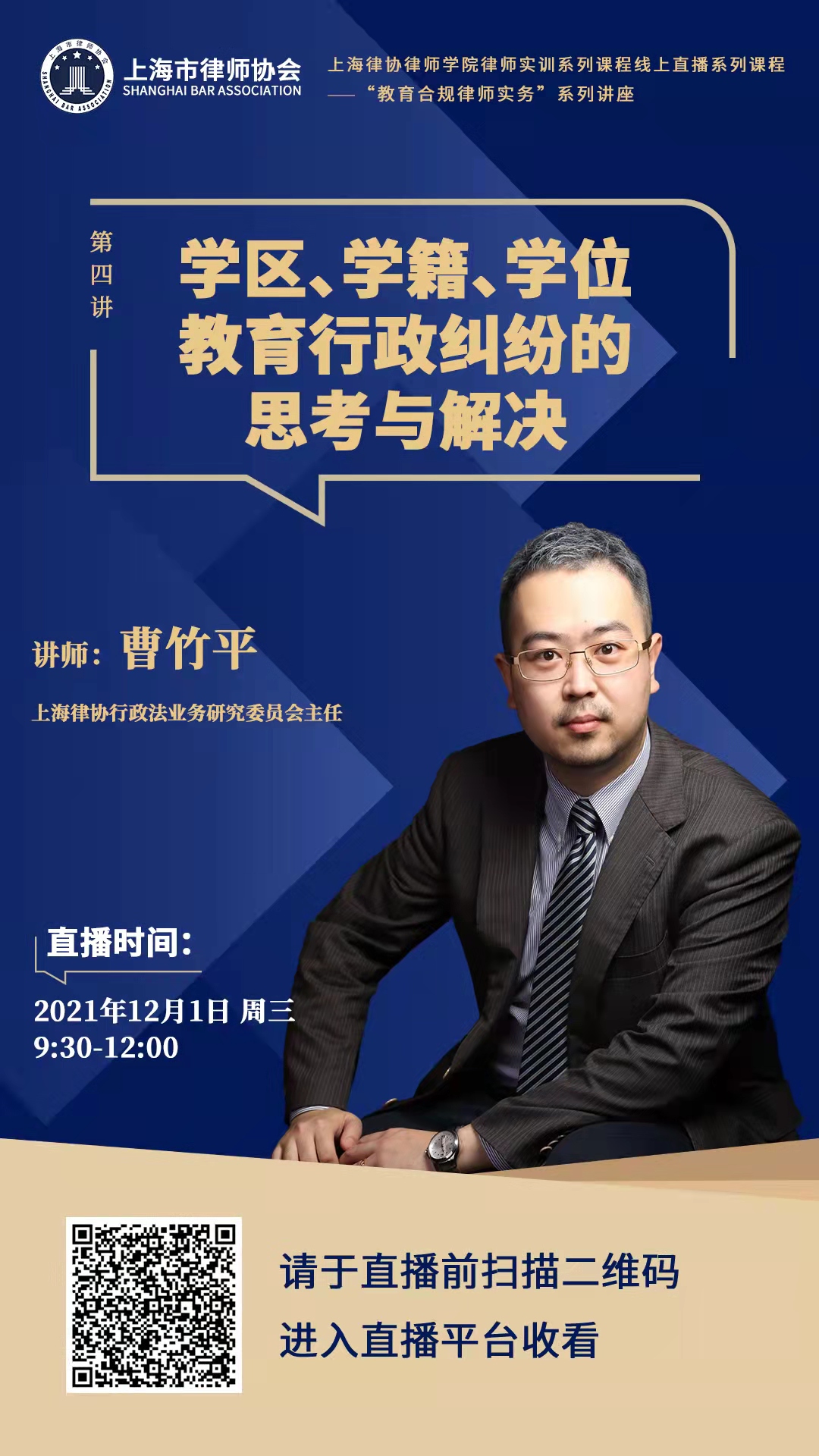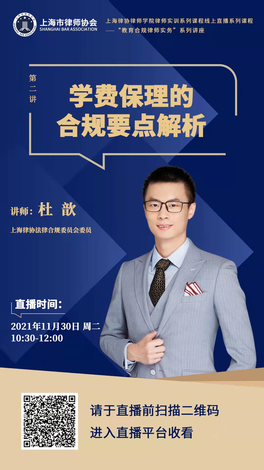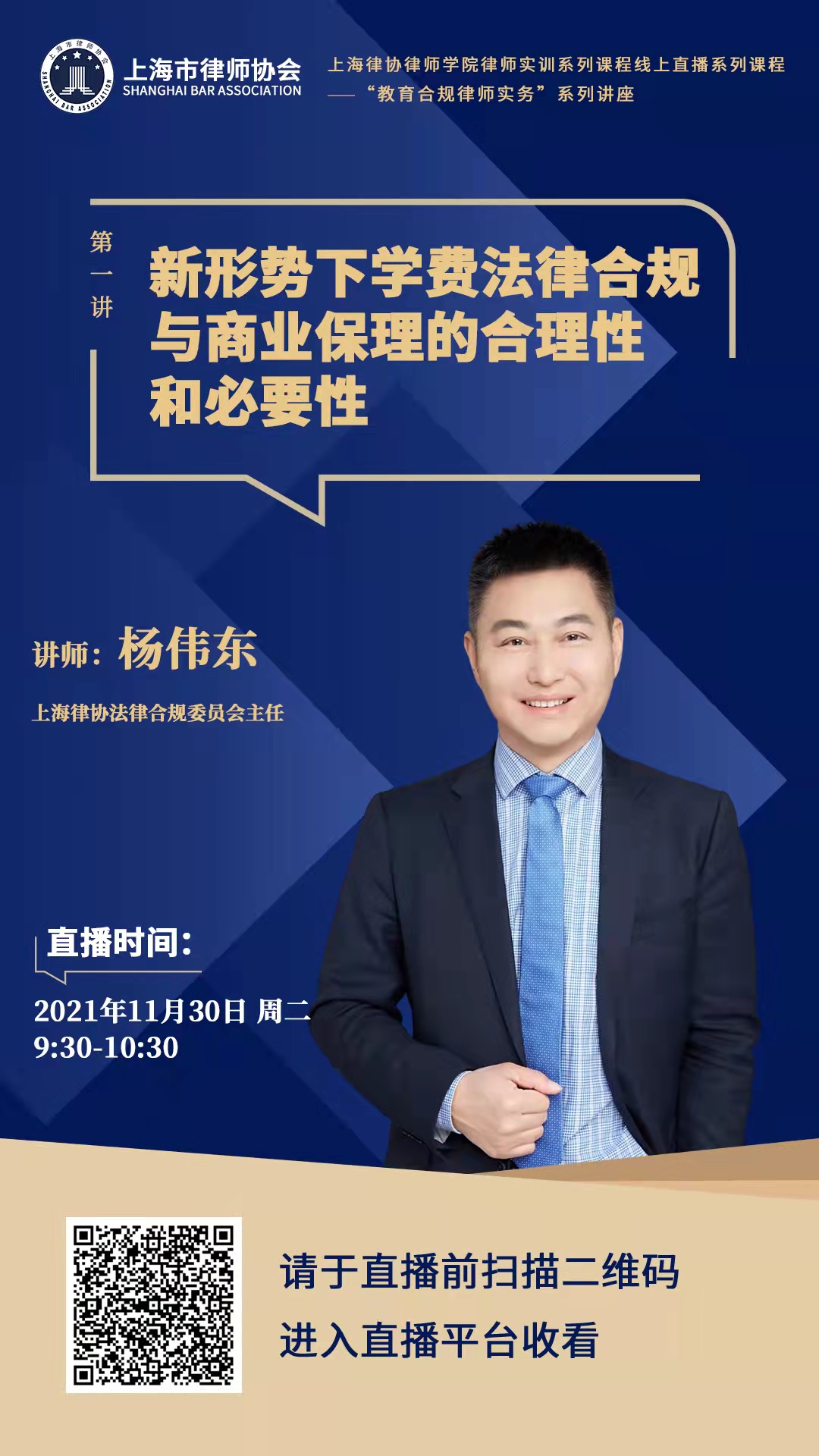 為幫助指導本市律師提高相應領域的執業技能,上海律協法律合規業務研究委員會、政府法律顧問業務研究委員會、行政法業務研究委員會和教育業務研究委員會聯合舉辦“教育合規律師實務系列講座”,邀請教育法領域的相關專家學者、實務工作者就教育合規相關實務問題作專題講座,具體安排如下:
