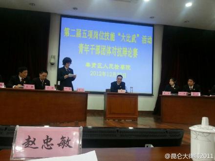 本月20日,上海市昆侖律師事務所主任趙忠敏律師應邀前往奉賢區人民檢察院,上午、下午分別出席該院青年干部團體對抗辯論賽、公訴干部對抗辯論賽,并擔任評委。擔任評委的還有上海市人民檢察院研究室主任、市人民檢察院第一分院二審處副處長、奉賢區人民檢察院副檢察長、反貪局副局長等。辯論賽上,從社會熱點問題,到刑事爭議案例,青年檢察官們激烈論辯、睿智機敏、妙語連珠,時時閃現智慧的火花。他們勤奮好學、積極上進的精神,很值得我們律師學習。