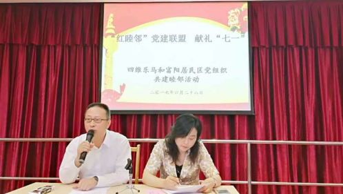 6月28日下午,上海四維樂馬黨支部與富陽居民區黨總支在居民區會議室召開了“‘紅睦鄰’黨建聯盟 獻禮七一”主題活動,楊浦區司法局副局長唐明祥、四維樂馬律師事務所黨支部書記王桂喜、富陽居民區干部和全體黨員數十人參加此次活動。