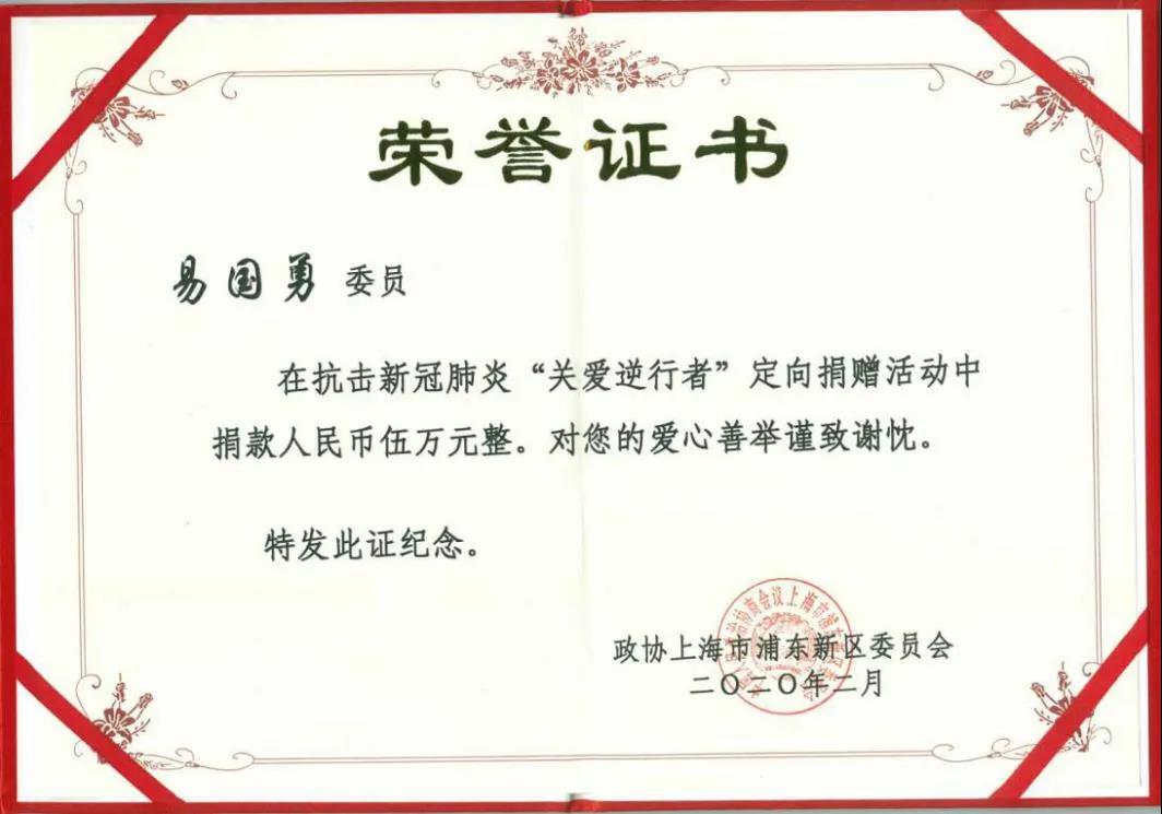 上海浦東新區政協常委、上海市金橋律師事務所律師易國勇在政協發起的抗擊新冠肺炎“關愛逆行者”定向捐贈活動中積極捐款5萬元。此外,還就疫情期間涉及的刑事罪名,以法律問答形式,對一些關注度較高或共性較大的問題進行解讀,回應關切。
