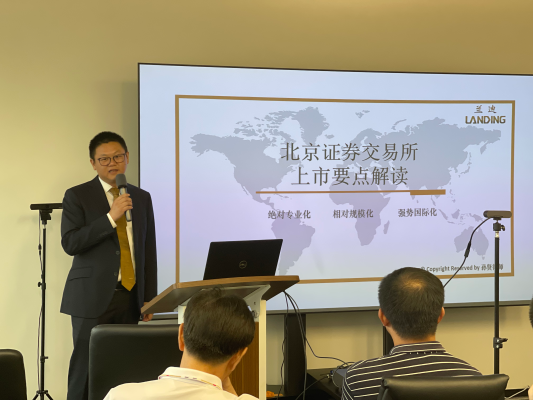 2021年10月15日,由虹口律工委與上海蘭迪律師事務所聯合舉辦的“北交所上市要點解讀”主題沙龍活動順利舉行。本次活動邀請上海市律師協會金融工具業務研究委員會委員、蘭迪所合伙人孫賢律師主講,活動以線上、線下相結合的方式開展,吸引了區內眾多律師參加。