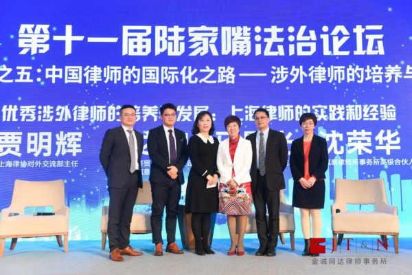 12月27日,第十一屆陸家嘴法治論壇之五——“中國律師國際化之路:涉外律師的培養與交流”分論壇在上海市浦東新區金茂君悅酒店舉行。本次論壇由上海市司法局、上海市律師協會、上海國際經濟貿易仲裁委員會指導,上海市浦東新區司法局、上海市律師協會浦東律師工作委員會、上海市浦東新區法律服務業協會主辦,北京金誠同達(上海)律師事務所承辦。