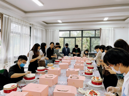 本次活動邀請專業的烘焙老師為大家傳授蛋糕的制作方法,大家在老師的指導下親手實踐操作。很多初學者從西點手法的基礎步驟開始學習,在專業設備的配合下由老師手把手教學,相互交流探索,耐心打磨,齊心協力制作出獨具特色的DIY蛋糕。為迎接二十大的勝利召開,大家也紛紛在蛋糕中加入了紅色主題元素,現場笑聲不斷、其樂融融。同時,為了表達對奉賢律師前輩的敬意,律工委還將制作完成的蛋糕一一寄送至奉賢退休律師手中。