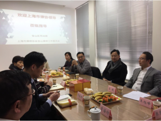 2018年2月7日下午,市律協副會長呂琰、副秘書長王旭峰等一行四人來到寶山區律工委調研寶山區律師工作開展情況。寶山區司法局局長沈海敏、副局長李曉平、公律科科長朱湘蓮、區律工委主任范仲興、副主任譚春明、顧玉紅、委員常海防等參加本次調研活動。會議由寶山律工委主任范仲興主持。