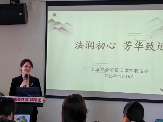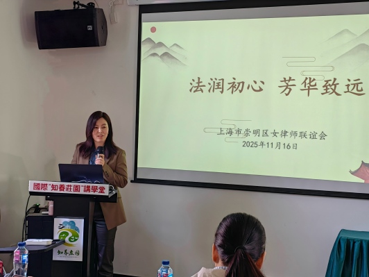 2025年11月16日,由崇明區(qū)律工委指導(dǎo),崇明女律師聯(lián)誼會(huì)主辦的“法潤(rùn)初心·芳華致遠(yuǎn)”主題沙龍活動(dòng)在崇明區(qū)知養(yǎng)莊園成功舉辦。