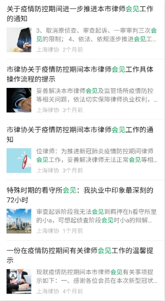 除了會費減免,上海律協在疫情期間積極爭取律師會見權利也讓劉杰感受到行業關懷。從最初在疫情防控最艱難時期的初步放開律師會見,到隨后相關工作進一步開展,律師會見得到進一步放開,這些都讓上海律師印象深刻。劉杰律師說“很多上海和外地律師都在轉發上海律協有關會見的規定,已經在朋友圈形成刷屏效應。”