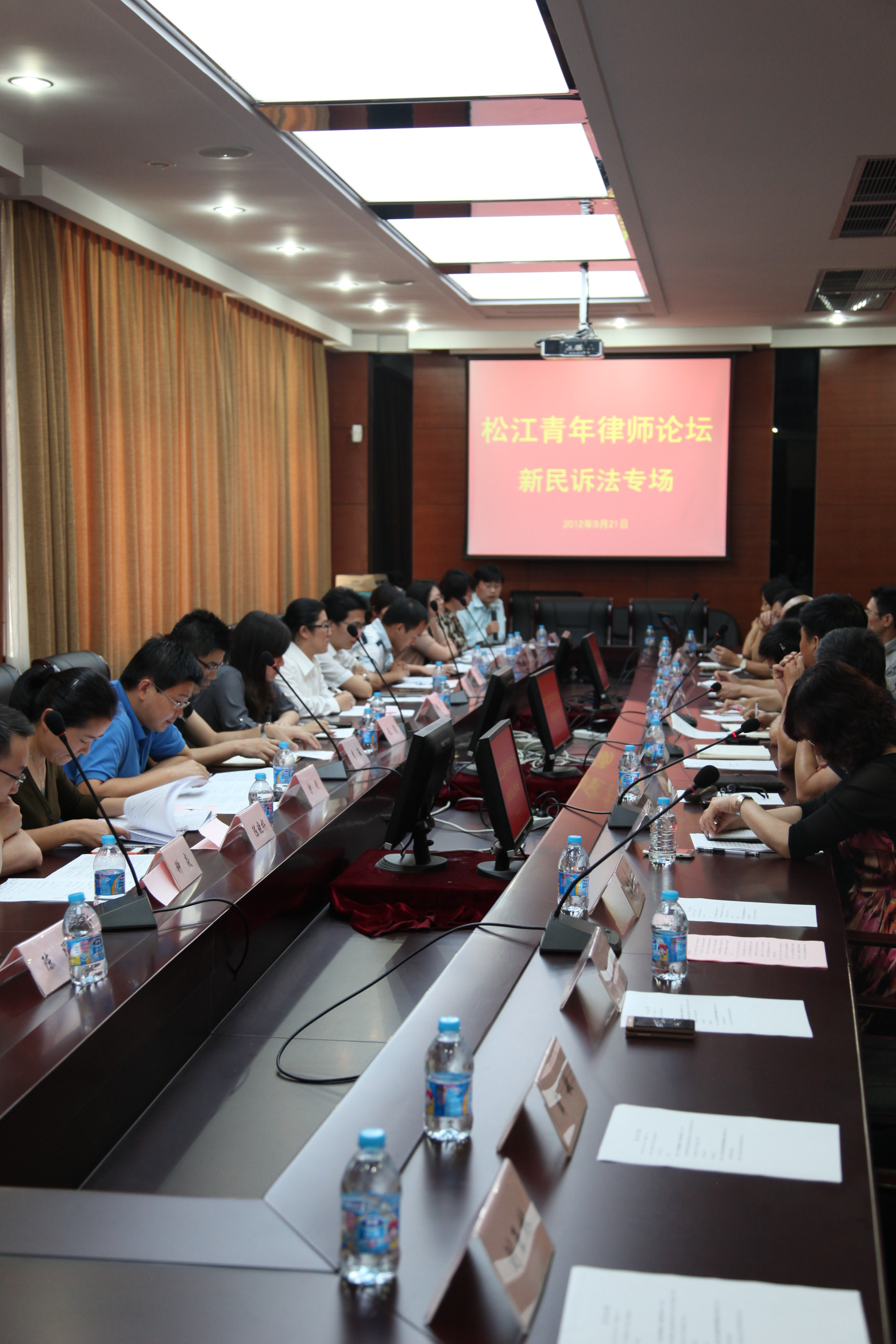 為了學習貫徹全國人大常委會頒步的,將于 2013 年 1 月 1 日 起施行的新民事訴訟法,進一步提高律師的業務素質, 9 月 21 日 下午,松江區司法局律公科和區律工委聯合舉辦了本區青年律師論壇(新民訴法專場)暨松江區第二屆松江青年律師候選人風彩展示演講會,13名候選人就新民訴法修訂的條款發表了自已的學習體會,有的候選人針對新法條與原條文的比較做了PPT在現場演示講解,區律師黨委、律工委領導、部分律所主任參加并與優秀青年律師候選人交流互動。