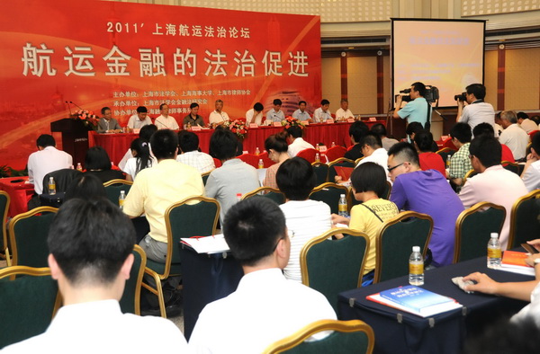 為配合上海國(guó)際航運(yùn)中心建設(shè),著力研究并解決其中遇到的重點(diǎn)、難點(diǎn)法律問題,7月7日下午,上海市律師協(xié)會(huì)聯(lián)合上海市法學(xué)會(huì)、上海海事大學(xué)在國(guó)際會(huì)議中心舉辦 “2011上海航運(yùn)法治論壇”。論壇以 “航運(yùn)金融的法治促進(jìn)”為主題,邀請(qǐng)來自航運(yùn)及金融主管部門、法學(xué)院校、司法實(shí)務(wù)部門、法律服務(wù)機(jī)構(gòu)的專家學(xué)者,就“航運(yùn)金融創(chuàng)新與法制環(huán)境”、“航運(yùn)融資與保險(xiǎn)的法律問題”等主題深入研討。