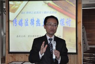 2012 年3月15日 ,君合律師事務所上海分所黃榮楠律師為徐匯律師之家作了以“傳媒法律熱點案件探討”為主題的律師沙龍活動,在介紹了傳媒法律業(yè)務的最新熱點和發(fā)展動向和經(jīng)典案件的同時,積極鼓勵青年律師在此領(lǐng)域中進行探索、尋求突破,建立自己特有的專業(yè)方向。副局長朱志忠參加活動。