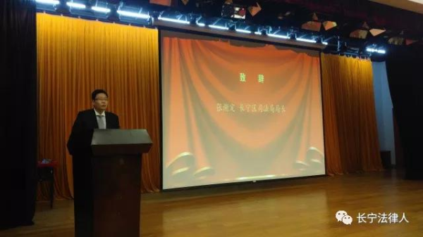 長寧區委常委、政法委書記張磊指出:長寧律師是一群有擔當、有理想、有智慧的法律人,代表了上海法律服務業的較高水平。長寧區連續兩年獲得了全國平安建設榮譽稱號,這其中離不開律師的作用。黨的十九大報告中將全面依法治國提高了一個新的高度,希望長寧律師繼續把握法律的本質、始終不忘堅守公平正義,更好地弘揚法治文化,不斷提升法律素養,為法治上海、法治長寧做出新的貢獻。