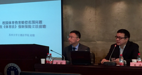 趙毅教授做題為“體育傷害賠償范圍問題和《體育法》中的保險立法講座”。趙教授深入淺出地分析了我國體育傷害賠償范圍相關的問題,包括但不限于法律依據、判例匯總、判決統計、責任分擔、趨勢展望、可行性保護方案等內容。通過完整的數據統計、精確的案例分析,趙教授依托于我國法律體系并結合我國司法實踐,帶來了一場學理與實踐完美結合的專題研討。同時,趙教授作為我國《體育法》修訂小組的成員,就本次修訂過程中涉及保險機制與校園體育傷害結合之問題,就將保險體系直接修訂至《體育法》的可行性,與參會人士進行了深入溝通,就不同法律法規修改過程中吸取的經驗進行了交流。