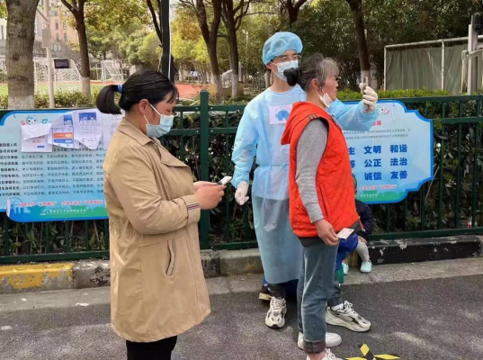 京師所王敬明律師,3月18日,楊浦區長海路街道核酸檢測志愿工作,協助居民檢測建碼。