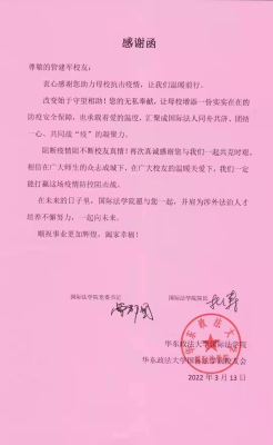 國浩所管建軍律師向華政抗疫基金捐款,助力閉環管理期間的華政松江校區廣大師生共渡難關。