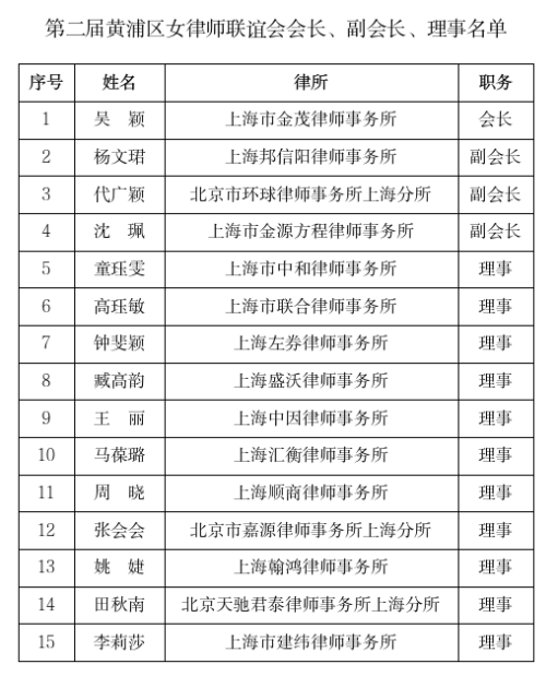附第二屆黃浦區青律聯、女律聯會長、副會長、理事名單: